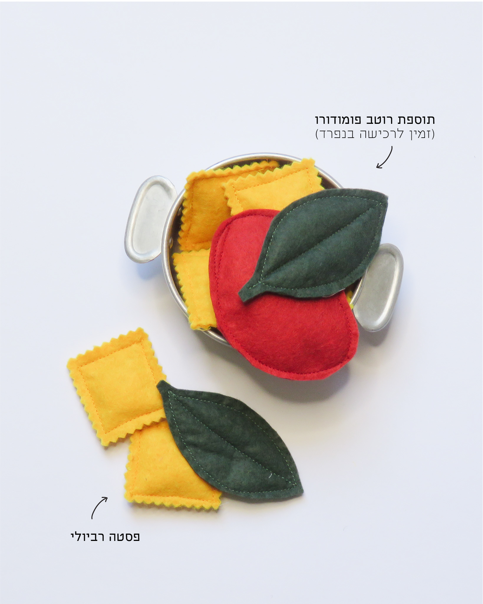 משחק פסטה לילדים, שמזמין לדמיון ולמשחק פתוח. משחק נעים למגע, שמעודד יצירתיות, חיקוי ומשחק רגוע.