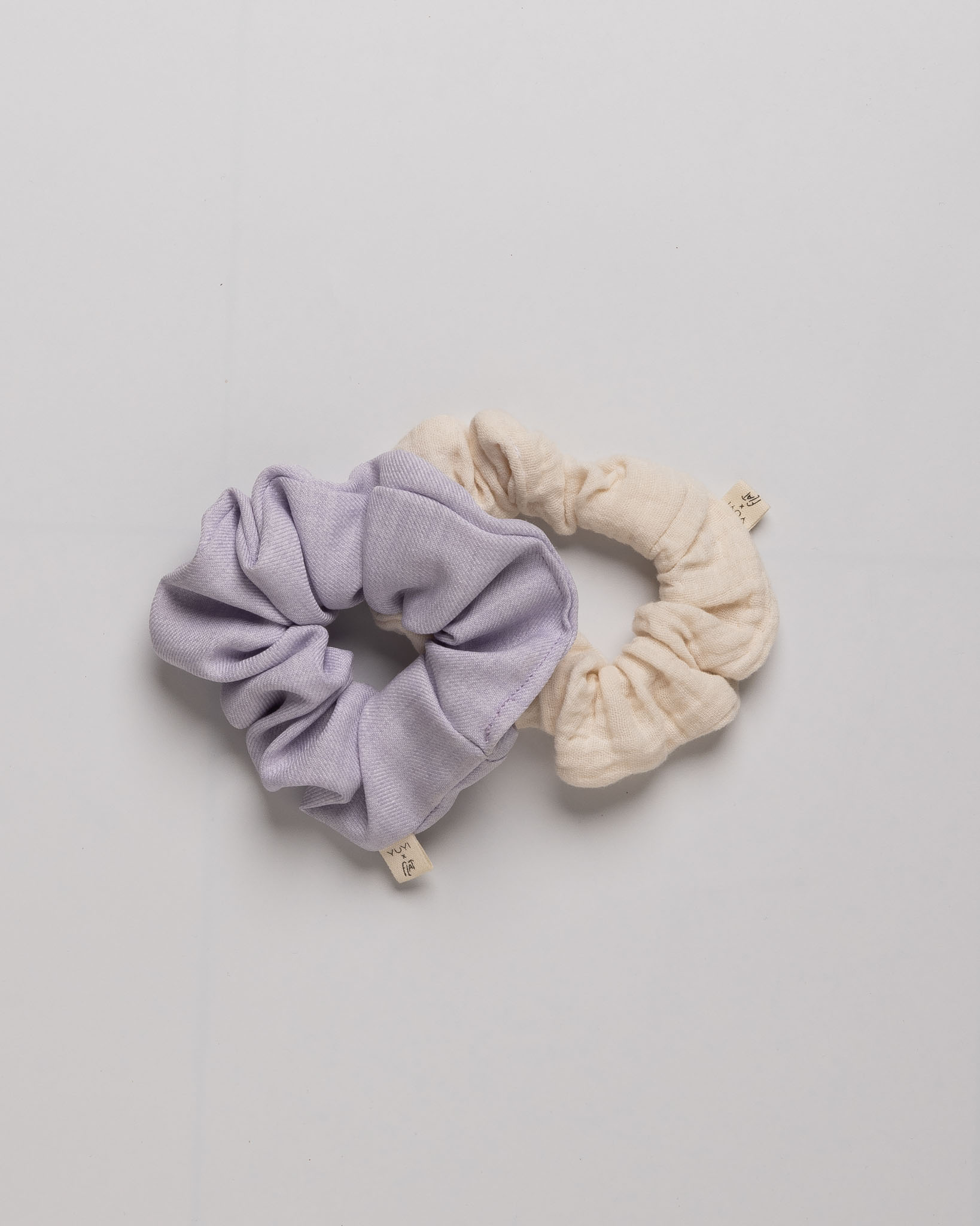 סט של 2 גומיות סקראנצ'י בגווני לילך רך ושמנת טבעית. קיים גם במידה לקטנטנים.