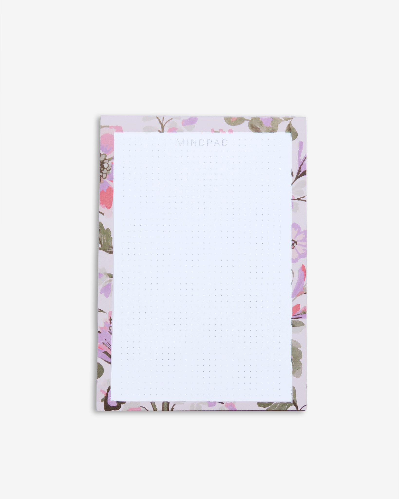 נוטפד Spring Blossom Mindpad נועד להיות מונח תמיד על שולחן העבודה, בגודל קומפקטי של A5, שמתאים לנשיאה בתיק העבודה.