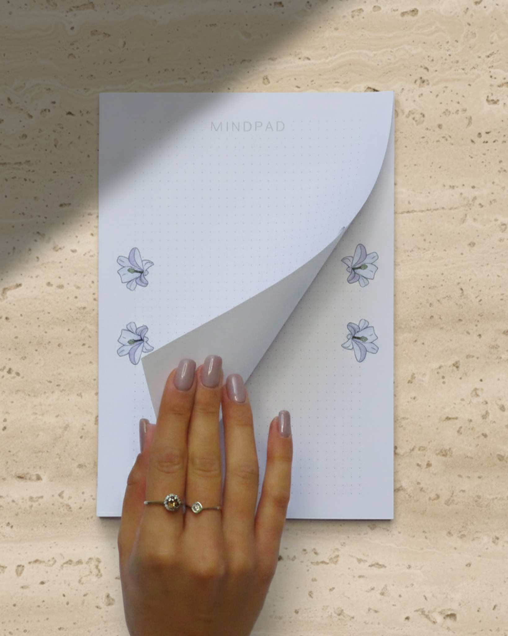 נוטפד White Lily Mindpad, הוא Must-have לכל שולחן עבודה. עם עיצוב מינימליסטי ועדין, מוכן לרישום הערות, מחשבות ומשימות שוטפות.